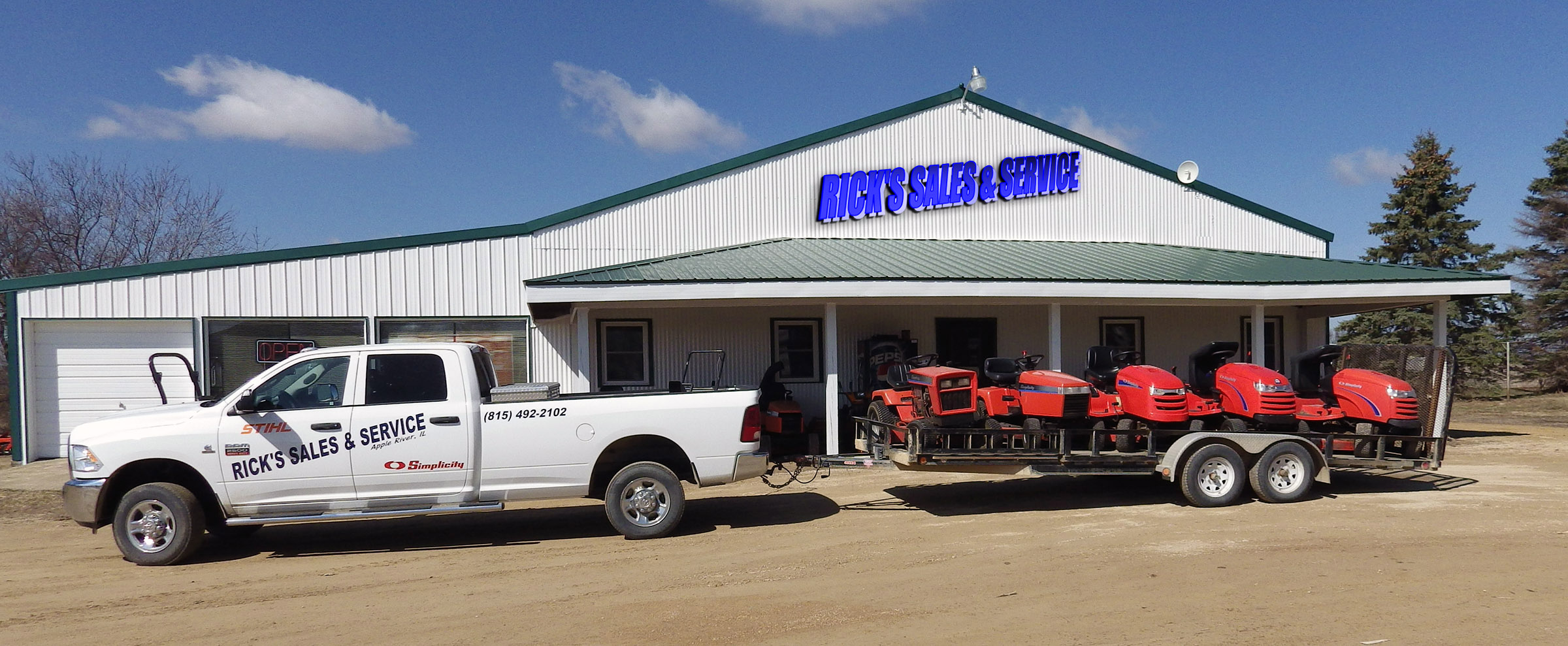 Before Rick’s Sales and Service came to be, the business started out as Hammer Implement. Rick’s grandparents, Clinton and Pearl Hammer, began farming in rural Apple River, Illinois during the Great Depression in 1939. After 30 years, Clinton erected a building on the farm which was the site of an old chicken house. He used the building to repair his farm machinery which evolved into supplying Allis Chalmers tractors and related farm implements to the surrounding farm families. They also began selling Simplicity lawn and garden equipment about this time.
